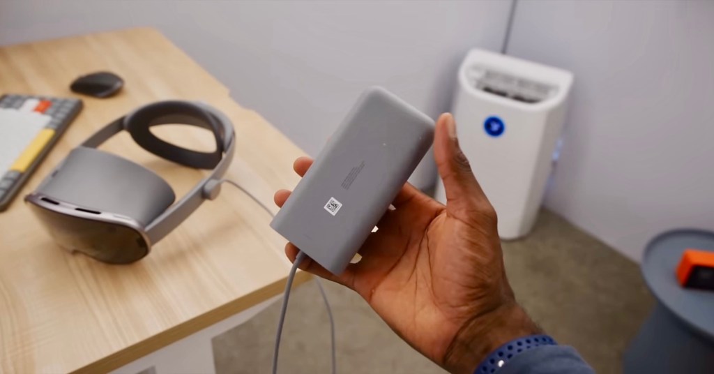 Perhaps one of the smartest design choices is the external battery pack connected via USB-C. Unlike Apple’s fixed cable, this setup allows users to swap out batteries or connect third-party options for longer usage.